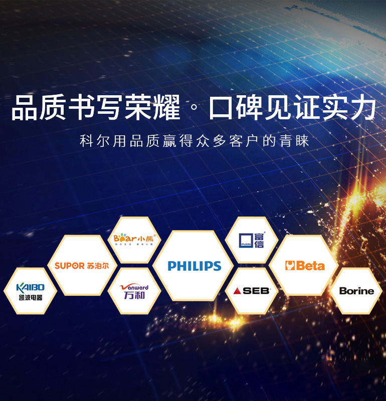 广东科尔技术发展有限公司成立于1997年,为中国A股上市公司控股企业(母公司股票代码:831167),是产品开发和精密注塑模具制造的专业厂家,在“家电、美容电器、医疗电器、电子产品、汽车内饰件”等领域的产品开发和注塑模具方面享有良好的社会声誉和口碑,赢得苏泊尔、小熊、万和、SEB、飞利浦等国内外优质客户的信赖。